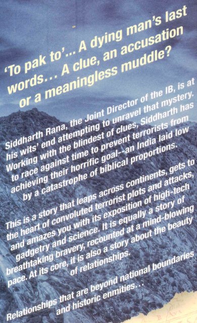 Siddharth Rana, the Joint Director of the IB, is at his wits end attempting to unravel that mystery. Working with the blindest of clues, Siddharth has to race against time to prevent terrorists from achieving their horrific goal-an India laid low by a catastrophe of biblical proportions. This is a story that leaps across continents, gets to the heart of convoluted terrorist plots and attacks and amazes you with its exposition of high-tech gadgetry and science. It is equally a story of breathtaking bravery, recounted at a mind-blowing pace. At its core, it is also a story about the beauty of relationships. Relationships that are beyond national boundaries and historic enmities. About the Author Ajay is currently with the Indian Revenue Service (IRS). His background as an engineer and his two decades of work with the Indian Revenue Service, his close association with different intelligence agencies around the globe, the World Bank and the International Monetary Fund in Washington DC, attachment with the Indian Embassy in USA and his training at Duke University, North Carolina, USA have given him a deep understanding of world geopolitics and the intricacies of how intelligence agencies and governments at different levels operate worldwide. All of this has fed into his first novel, Resonance.