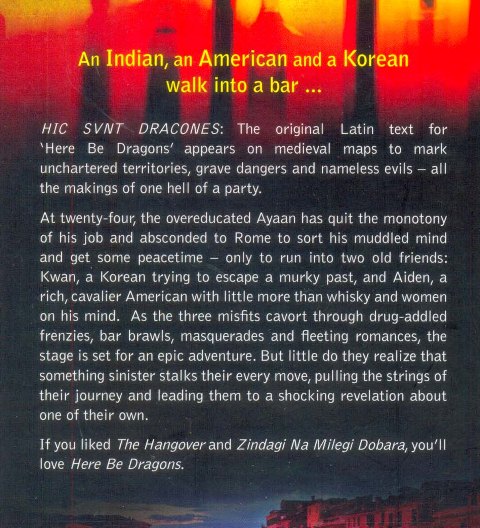 HIC SVNT DRACONES : The original Latin text for 'Here Be Dragons' appears on medieval maps to mark unchartered territories, grave dangers and nameless evils � all the makings of one hell of a party. At twenty-four, the overeducated Ayaan has quit the monotony of his job and absconded to Rome to sort his muddled mind and get some peacetime only to run into two old friends: Kwan, a Korean trying to escape a murky past and Aiden, a rich, cavalier American with little more than whiskey and women on his mind. As the three misfits cavort through drug-addled frenzies, bar brawls, masquerades and fleeting romances, the stage is set for an epic adventure. But little do they realize that something sinister stalks their every move, pulling the strings of their journey - leading them to a shocking revelation about one of their own.