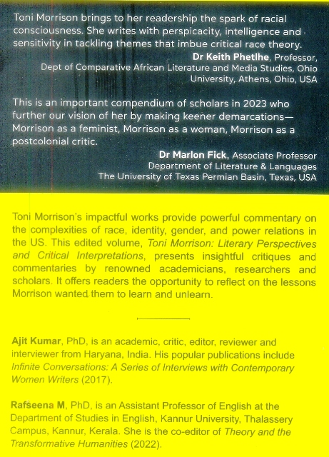 Toni Morrison’s impactful works provide powerful commentary on the complexities of race, identity, gender, and power relations in the US. This edited volume, Toni Morrison: Literary Perspectives and Critical Interpretations, presents insightful critiques and commentaries by renowned academicians, researchers and scholars. It offers readers the opportunity to reflect on the lessons Morrison wanted them to learn and unlearn.