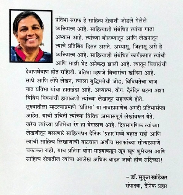 दैनंदिन घटना, योग आणि अध्यात्म अशा विविध विषयांवर आधारित लेखांचा संग्रह.