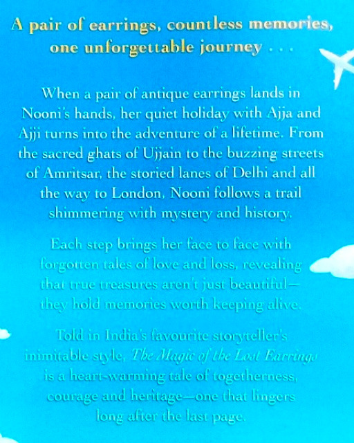 When a pair of antique earrings lands in Nooni’s hands, her quiet holiday with Ajja and Ajji turns into the adventure of a lifetime. From the sacred ghats of Ujjain to the buzzing streets of Amritsar, the storied lanes of Delhi and all the way to London, Nooni follows a trail shimmering with mystery and history. Each step brings her face to face with forgotten tales of love and loss, revealing that true treasures aren’t just beautiful―they hold memories worth keeping alive. Told in India’s favourite storyteller’s inimitable style, The Magic of the Lost Earrings is a heart-warming tale of togetherness, courage and heritage―one that lingers long after the last page.