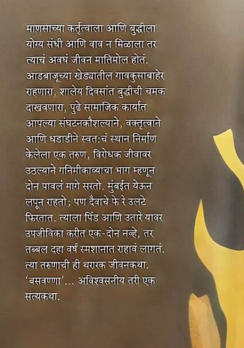 गावकुसाबाहेरच्या वस्तीत जन्मलेल्या हुशार बसवण्णाचं स्वप्न असतं शिक्षक होऊन खूप शिकण्याचं; पण त्याच्या होणार्या पत्नीला, चिन्नीला तिची जोगतीण आत्या देवदासी बनवते. देवदासी प्रथेच्या विरोधात काम करणार्या डॉ. दीक्षितांच्या संपर्कात येऊन बसवण्णाही त्यांच्या कार्यात सामील होतो; पण जोगतिणीचे लोक त्याच्या जिवावर उठतात. जीव वाचवण्यासाठी त्याला कबरीत लपावं लागतं, नंतर मुंबईला धारावीत जाऊन राहावं लागतं, किराप्पा मोईली या गुंडाकडे. किराप्पा त्याच्या रखेलीच्या मुलीशी बसवण्णाचं लग्न ठरवतो आणि बसवण्णा तिथून गायब होऊन एका स्मशानात आश्रय घेतो, जवळजवळ दहा वर्षं. नंतर त्याच्या बालमित्राच्या मदतीने त्याला सरकारी नोकरी लागते, चिन्नीशी प्रतीकात्मक विवाह होतो, नंतर सुभद्राशी लग्न होऊन, मुलं होऊन, तो सर्वसामान्य आयुष्य जगतो; पण स्मशानात राहत असताना थोडीफार अघोरी विद्या शिकलेल्या बसवण्णाचा मृत्यू फार विचित्र पद्धतीने होतो. अंगावर शहारे आणणारी सत्यकथा