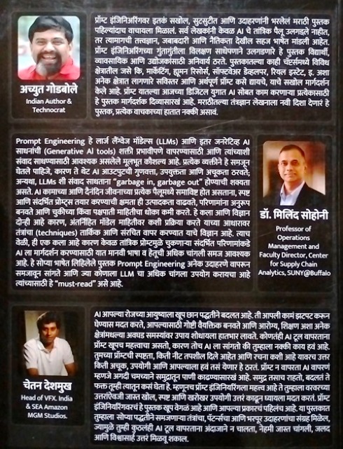 आजच्या डिजिटल युगात कृत्रिम बुद्धिमत्ता आपल्या दैनंदिन जीवनाचा अविभाज्य भाग बनली आहे. माहिती शोधणे असो, कंटेंट तयार करणे असो किंवा जटिल निर्णय घेणे असो—AI आपल्याला सतत मदत करत आहे. पण या सामर्थ्यशाली तंत्रज्ञानाचा सर्वाधिक परिणामकारक वापर कसा करायचा? या प्रश्नाचे मूळ उत्तर आहे—प्रॉम्प्ट इंजिनिअरिंग. AI कडे प्रश्न विचारणे ही फक्त विनंती नसून, एक शास्त्रीय प्रक्रिया आहे. योग्य प्रॉम्प्ट म्हणजे सुरीला स्वर—AI त्यावर अद्भुत संगीत निर्माण करते. चुकीचा प्रॉम्प्ट म्हणजे विसंगत सूर—परिणामही तितकाच विस्कळीत. या सूक्ष्म पण प्रभावी विज्ञानाची सखोल, प्रायोगिक आणि सोपी ओळख करून देणे—यासाठी ‘सहज सोपे Prompt Engineering’ हे महत्वाकांक्षी पुस्तक आम्ही वाचकांसमोर ठेवत आहोत. या पुस्तकात आपण जाणून घ्याल— प्रॉम्प्ट इंजिनिअरिंगची नेमकी व्याख्या आणि तत्त्वे, AI च्या कार्यपद्धतीला योग्य दिशेने मार्गदर्शन कसे करावे, विविध प्रकारचे प्रॉम्प्ट्स—निर्देशात्मक, संवादात्मक, विश्लेषणात्मक, सर्जनशील ,मार्केटिंग, कोडिंग, कंटेंट, स्टार्टअप, डिझाइन, शिक्षण, HR, संशोधन… अशा अनेक क्षेत्रांती, प्रॉम्प्ट्सचे वास्तविक उपयोग, सूक्ष्म तांत्रिक बाबी, उदाहरणे आणि प्रत्यक्ष वापरातील अचूक टिप्स. या सर्वांचा सामायिक उद्देश— “प्रत्येक वाचकाला AI चा प्रभावी वापरकर्ता नव्हे, तर एक सक्षम प्रॉम्प्ट इंजिनिअर बनवणे.” __________________________________________ अभिप्राय - प्रॉम्ट इंजिनिअरिंगवर इतकं सखोल, सुटसुटीत आणि उदाहरणांनी भरलेलं मराठी पुस्तक पहिल्यांदाच वाचायला मिळालं. सर्व लेखकांनी केवळ AI चे तांत्रिक पैलू उलगडले नाहीत, तर त्यामागची तत्त्वज्ञान, जबाबदारी आणि नैतिकता देखील सहज भाषेत मांडली आहेत. प्रॉम्ट इंजिनिअरिंगच्या गुंतागुंतीला विलक्षण साधेपणाने उलगडणारे हे पुस्तक विद्यार्थी, व्यावसायिक आणि उद्योजकांसाठी अनिवार्य ठरते. पुस्तकातल्या काही चॅप्टर्समध्ये विविध क्षेत्रातील जसे कि, मार्केटिंग, ह्यूमन रिसोर्स, सॉफ्टवेअर डेव्हलपर, रियल इस्टेट, इ. अशा अनेक क्षेत्रात लागणारे सविस्तर आणि अर्थपूर्ण प्रॉम्ट कसे द्यायचे, याचे सखोल मार्गदर्शन केले आहे. प्रॉम्ट यातल्या आजच्या डिजिटल युगात AI सोबत काम करणाऱ्या प्रत्येकासाठी हे पुस्तक मार्गदर्शक दिव्यासारखं आहे. मराठीतल्या तंत्रज्ञान लेखनाला नवी दिशा देणारं हे पुस्तक, प्रत्येक वाचकाच्या हातात नक्की असावं. अच्युत गोडबोले Indian Author & Technocrat _________________________ Prompt Engineering हे लार्ज लैंग्वेज मॉडेल्स (LLMs) आणि इतर जनरेटिव्ह AI साधनांची (Generative Al tools) शक्ती प्रभावीपणे वापरण्यासाठी आणि त्यांच्याशी संवाद साधण्यासाठी आवश्यक असलेले मूलभूत कौशल्य आहे. प्रत्येक व्यक्तीने हे समजून घेतले पाहिजे, कारण ते थेट AI आ
