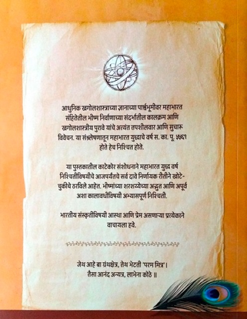 खोल अभ्यासपूर्ण , आधुनिक खगोलशास्त्राच्या ज्ञानाच्या पार्श्वभूमीवर महाभारत संहितेतील भीष्म निर्वाणाच्या संदर्भातील कालक्रम आणि खगोल शास्त्रीय पुरावे यांचे तपशीलवार विवेचन. भारतीय संस्कृती विषयी आस्था असणाऱ्या प्रत्येकाने हे पुस्तक वाचावे आणि संग्रही ठेवावे. #परम #मित्र, #भारतीय संस्कृती #खगोलशास्त्र,#महाभारत, #श्रीकृष्ण #भीष्म, #इतिहास,#अभिजातभाषा,# मराठी,#पुस्तक,#वाचन पाने १७२, आकार ९"* ६"