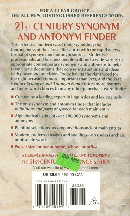 Designed for rapid access, this innovative reference helps the reader find the perfect choice of words to get his/her ideas across with impact and accuracy. Specially created for contemporary writers and speakers, it includes essential definitions and avoids outmoded, useless entries.