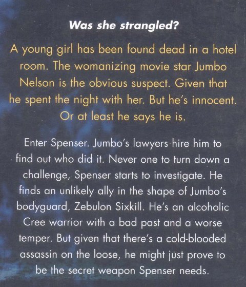 A villainous movie star, a soft-spoken assassin, and a new sidekick all await Spenser, Robert B. Parker’s legendary private eye. A girl has been found dead, seemingly strangled, in the hotel room of movie star Jumbo Nelson. Jumbo’s lawyers want Spenser to find out whether Jumbo did it – not because they care either way, but because the knowledge will help them work out how to block his conviction. Jumbo is a sufficiently repulsive individual that Spenser finds it hard to contain his distaste. And then there is his bodyguard, Zebulon Six kill, a Cree Indian who squandered his pro-football career thanks to an inability to control his temper, and turned his attentions to alcohol instead. Also involved in Jumbo’s case for reasons that remain unclear is a cold-blooded assassin who just might be the most dangerous enemy Spenser has faced yet. But if he can persuade Six kill to turn his life around, Spenser might just have the ally he needs