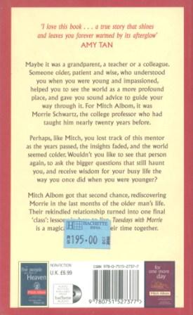 Maybe it was a grandparent, or a teacher or a colleague. Someone older, patient and wise, who understood you when you were young and searching, and gave you sound advice to help you make your way through it. For Mitch Albom, that person was Morrie Schwartz, his college professor from nearly twenty years ago.Maybe, like Mitch, you lost track of this mentor as you made your way, and the insights faded. Wouldn't you like to see that person again, ask the bigger questions that still haunt you? Mitch Albom had that second chance. He rediscovered Morrie in the last months of the older man's life. Knowing he was dying of ALS - or motor neurone disease - Mitch visited Morrie in his study every Tuesday, just as they used to back in college. Their rekindled relationship turned into one final 'class': lessons in how to live. Tuesdays with Morrie is a magical chronicle of their time together