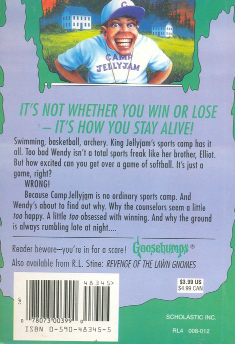 Swimming, basketball, archery. King Jellyjam's sports camp has it all. Too bad Wendy isn't a total sports freak like her brother, Elliot. But how excited can you get over a game of softball. It's just a game right? WRONG! Because Camp Jellyjam is no ordinary sports camp. And Wendy's about to find out why. Why the counselors seem a little too happy. A little too obsessed with winning. And why the ground is always rumbling late at night