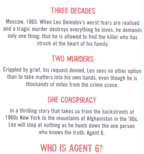 The hotly anticipated follow-up to Tom Rob Smith's widely celebrated, Bookerlonglisted debut novel Child 44 and The Secret Speech. Former Soviet Secret Service agent Leo Demidov has built himself a new life as a civilian with his wife Raisa, and their two teenage daughters, Elena and Zoya. The Soviet Union is a country trying to reassert itself after the murderous excesses of Stalin and the chaos of the following years, and as the Cold War continues powers inside Russia seek to topple their great enemy, the United States of America. Communist allies within the United States will prove vital players in this game of intrigue and revolution. Raisa and their two daughters travel to the United States on a diplomatic mission, but a horrifying tragedy destroys everything Leo and Raisa have built. Leo must get to the States somehow and find out what happened. Exiled from the Soviet Union and separated from his family, Leo's quest takes him through the stark wilderness of Afghanistan, reawakening all his old instincts and forcing him to confront his demons. his demons. But whatever it costs, wherever he must go, he will find Agent 6.