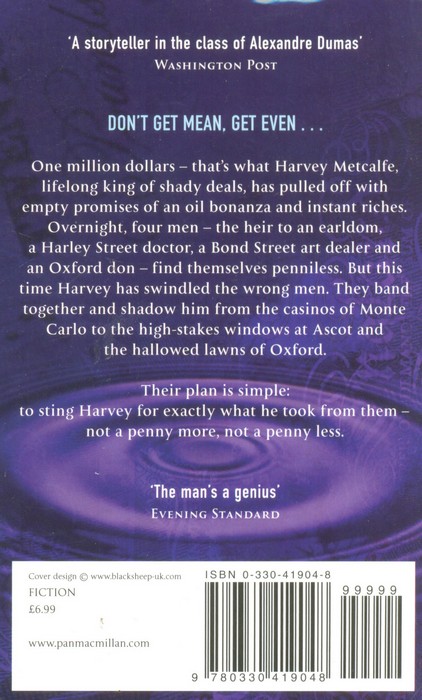 One million dollars - that's what Harvey Metcalfe, lifelong king of shady deals, has pulled off with empty promises of an oil bonanza and instant riches. Overnight, four men - the heir to an earldom, a Harley Street doctor, a Bond Street art dealer and an Oxford don - find themselves penniless. But this time Harvey has swindled the wrong men.