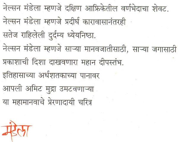 नेल्सन मंडेला म्हणजे दक्षिण आफ्रिकेतील वर्णभेदाचा शेवट. नेल्सन मंडेला म्हणजे प्रदीर्घ कारावासानंतरही सतेज राहिलेली दुर्दम्य ध्येयनिष्ठा. नेल्सन मंडेला म्हणजे सा-या मानवजातीसाठी, सा-या जगासाठी प्रकाशा[...]