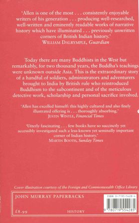 Today there are many Buddhists in the West, but for 2000 years the Buddha's teachings were unknown outside Asia. It was not until the late 18th century, when Sir William Oriental Jones, a British judge in India, broke through the Brahmin's prohibition on learning their sacred language. Sanskrit, that clues about the origins of a religion quite distinct from Hinduism began to be deciphered from inscriptions on pillars and rocks. This study tells the story of the search that followed, as evidence mounted that countries as diverse as Ceylon, Japan and Tibet shared a religion which had its origins in India yet was unknown there. British rule brought to India, Burma and Ceylon a whole band of enthusiastic Orientalist amateurs - soldiers, administrators and adventurers - intent on investigating the subcontinent's lost past. Unwittingly, these men helped lay the foundations for the revival of Buddhism in Asia during the 19th century and its spread to the West in the 20th. Charles Allen's book is a mixture of detective work and story-telling, as this acknowledged master of British Indian history pieces together early Buddhist history to bring a handful of extraoridinary characters to life.