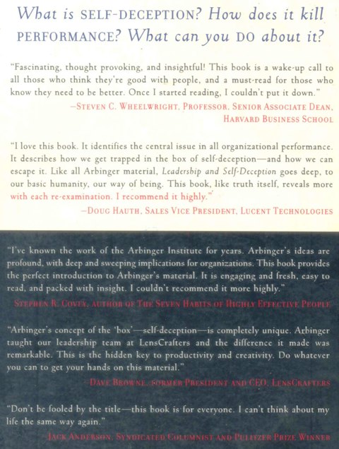Leadership and Self-Deception is the first book to reveal the foremost, critical cause of leadership failure. From the Arbinger Institute, a consortium of scholars, business leaders, and professionals, this book identifies self-deception as the disease at the core of all of the leadership shortcomings we see in today's organizations, and self-betrayal as the cause of the disease. It provides a new solution to the age-old problem of self-deception. This powerful solution shows that most people problems in organizations are the result of self-deceptiona problem that can be identified, isolated, and treated in a disciplined, results-oriented way. Through an entertaining and highly instructive story, this book presents a revolutionary new understanding of the nature of successful leadership, drawn from recent research and findings in philosophical psychology. It shows how self-betrayalthe act and then on-going state of going against one's ethical sense of what he or she should be doing for othersleads to self-deception, the central player in all leadership breakdowns, relationship issues, and performance problems in organizations. The book reveals how leaders who are self-deceived might as well be living in a boxtrapped, cut off from others, and blind to the truth. It illustrates how leaders trapped within this box cannot lead effectively no matter how hard they try and no matter how many skills and techniques they employ. Through vivid examples, the book shows what self-deception is, how it operates, and, most importantly, how it can be overcome. Leadership and Self-Deception demonstrates how when we understand self-deception we understand why its not enough to identify and treat leadership problems as if they were separate and distinct. Often that's what happens: we make an inventory of leadership skills and determine that a given leader doesn't provide enough feedback or doesn't take time to listen to people, or delegates without providing clear direction. But those who receive such feedback often fail to improve their leadership abilities. They may work to become more effective evaluators at one workshop, more practiced listeners at another, more directive leaders at another, and yet overlook completely the root cause of the problem. Frequently, they still are not transformed into leaders whom people want to follow. What will transform them? The authors assert that the key to leadership lies deeper than any particular behavior or skill. It lies in how we areour way of being. They reveal that, while we may behave in an infinite variety of ways, at the deep level of who we are, there are fundamentally two ways of being: the state of self-deception (like living in a box), and the state of being that is honest, straightforward, and genuine. The first is the source of leadership problems and the second the source of leadership success. While some books have identified the importance of state of being in leadership, this book shows how we come to enter one state or the other as leadersand how it is possible to change. Understanding and applying this principle is the key to leadership transformation; it is the key to becoming a consistent catalyst for success. Leadership and Self-Deception clearly demonstrates how people can stop undermining themselves and what amazing things happen when they dofreely and fully putting to work all the behavioral skills, systems, and techniques that will bring success to them and their organizations. While other books cover useful people skills, techniques, and systems of leadership, this one goes deeper, fully illuminating the source of what makes truly effective leadership.
