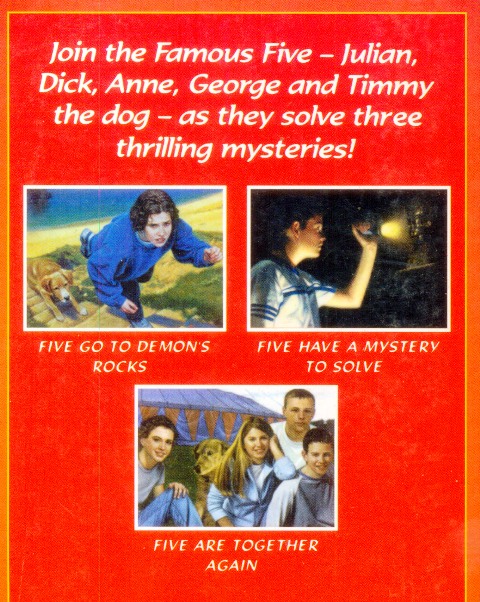 Join the Famous Five - Julian, Dick, Anne, George and Timmy the dog-as they solve three thrilling mysteries! Three Exciting Adventures! • Five Go To Demon's Rocks • Five Have A Mystery To Solve • Five Are Together Again