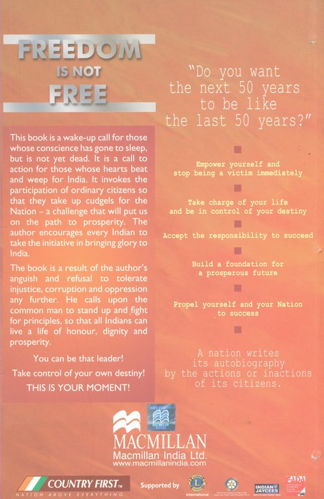 This book is a wake-up call for those whose conscience has gone to sleep, but is not yet dead. It is a call to action for those whose hearts beat and weep for India. It invokes the participation of ordinary citizens so that they take up cudgels for the nation
