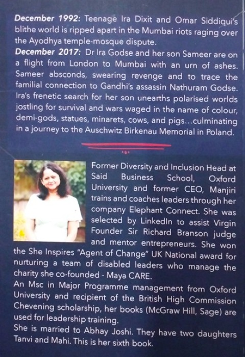 December 1992: Teenage Ira Dixit and Omar Siddiqui's blithe world is ripped apart in the Mumbai riots raging over the Ayodhya temple-mosque dispute. December 2017: Dr Ira Godse and her son Sameer are on a flight from London to Mumbai with an urn of ashes. Sameer absconds, swearing revenge and to trace the familial connection to Gandhi's assassin Nathuram Godse. Ira's frenetic search for her son unearths polarised worlds jostling for survival and wars waged in the name of colour, demi-gods, statues, minarets, cows, and pigs...culminating in a journey to the Auschwitz Birkenau Memorial in Poland. About the Author: Former Diversity and Inclusion Head at Said Business School, Oxford University and former CEO, Manjiri trains and coaches leaders through her company Elephant Connect. She was selected by LinkedIn to assist Virgin Founder Sir Richard Branson judge and mentor entrepreneurs. She won the She Inspires "Agent of Change" UK National award for nurturing a team of disabled leaders who manage the charity she co-founded - Maya CARE. An Msc in Major Programme management from Oxford University and recipient of the British High Commission Chevening scholarship, her books (McGraw Hill, Sage) are used for leadership training. She is married to Abhay Joshi. They have two daughters Tanvi and Mahi. This is her sixth book.