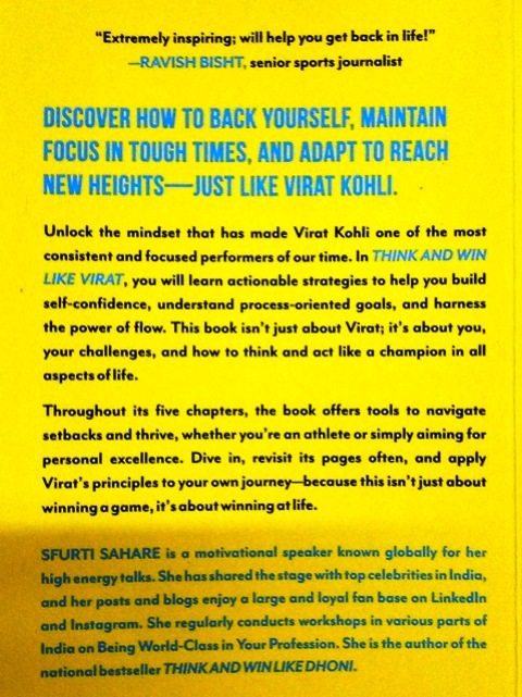 Discover how to back yourself, maintain focus in tough times, and adapt to reach new heights—just like Virat Kohli. Unlock the mindset that has made Virat Kohli one of the most consistent and focused performers of our time. In Think and Win Like Virat, you will learn actionable strategies to help you build self-confidence, understand process-oriented goals, and harness the power of flow. This book isn’t just about Virat; it’s about you, your challenges, and how to think and act like a champion in all aspects of life. Throughout its five chapters, the book offers tools to navigate setbacks and thrive, whether you’re an athlete or simply aiming for personal excellence. Dive in, revisit its pages often, and apply Virat’s principles to your own journey—because this isn’t just about winning a game, it’s about winning at life.