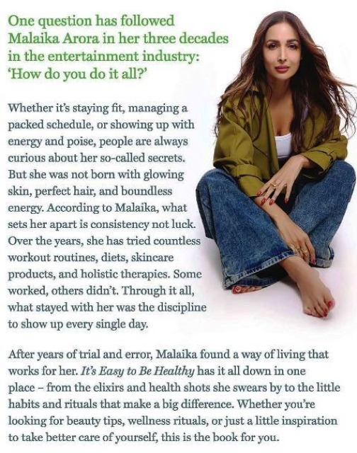 One question has followed Malaika Arora in her three decades in the entertainment industry: ‘How do you do it all?’ Whether it’s staying fit, managing a packed schedule, or showing up with energy and poise, people are always curious about her so-called ‘secrets’. But she was not born with glowing skin, perfect hair and boundless energy. According to Malaika, what sets her apart is consistency, not luck. Over the years, she has tried countless workout routines, diets, skincare products, and holistic therapies. Some worked, others didn’t. Through it all, what stayed with her was the discipline to show up every single day. After years of trial and error, Malaika found a way of living that works for her. It’s Easy to Be Healthy has it all down in one place—from the elixirs and health shots she swears by to the little habits and rituals that make a big difference. Whether you’re looking for beauty tips, wellness rituals, or just a little inspiration to take better care of yourself, this is the book for you.