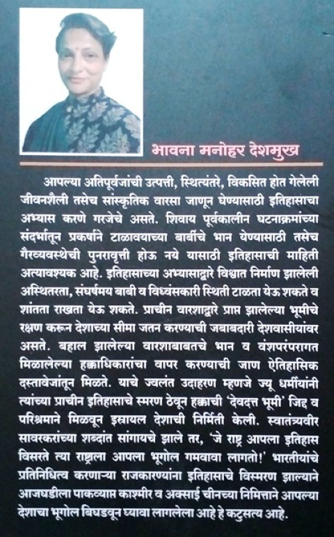 рдЖрдкрд▓реНрдпрд╛ рдЕрддрд┐рдкреВрд░реНрд╡рдЬрд╛рдВрдЪреА рдЙрддреНрдкрддреНрддреА, рд╕реНрдерд┐рддреНрдпрдВрддрд░реЗ, рд╡рд┐рдХрд╕рд┐рдд рд╣реЛрдд рдЧреЗрд▓реЗрд▓реА рдЬреАрд╡рдирд╢реИрд▓реА рддрд╕реЗрдЪ рд╕рд╛рдВрд╕реНрдХреГрддрд┐рдХ рд╡рд╛рд░рд╕рд╛ рдЬрд╛рдгреВрди рдШреЗрдгреНрдпрд╛рд╕рд╛рдареА рдЗрддрд┐рд╣рд╛рд╕рд╛рдЪрд╛ рдЕрднреНрдпрд╛рд╕ рдХрд░рдгреЗ рдЧрд░рдЬреЗрдЪреЗ рдЕрд╕рддреЗ. рд╢рд┐рд╡рд╛рдп рдкреВрд░реНрд╡рдХрд╛рд▓реАрди рдШрдЯрдирд╛рдХреНрд░рдорд╛рдВрдЪреНрдпрд╛ рд╕рдВрджрд░реНрднрд╛рддреВрди рдкреНрд░рдХрд░реНрд╖рд╛рдиреЗ рдЯрд╛рд│рд╛рд╡рдпрд╛рдЪреНрдпрд╛ рдмрд╛рд░реНрдмреАрдЪреЗ рднрд╛рди рдпреЗрдгреНрдпрд╛рд╕рд╛рдареА рддрд╕реЗрдЪ рдЧреИрд░рд╡реНрдпрд╡рд╕реНрдереЗрдЪреА рдкреБрдирд░рд╛рд╡реГрддреНрддреА рд╣реЛрдК рдирдпреЗ рдпрд╛рд╕рд╛рдареА рдЗрддрд┐рд╣рд╛рд╕рд╛рдЪреА рдорд╛рд╣рд┐рддреА рдЕрддреНрдпрд╛рд╡рд╢реНрдпрдХ рдЖрд╣реЗ. рдЗрддрд┐рд╣рд╛рд╕рд╛рдЪреНрдпрд╛ рдЕрднреНрдпрд╛рд╕рд╛рджреНрд╡рд╛рд░реЗ рд╡рд┐рд╢реНрд╡рд╛рдд рдирд┐рд░реНрдорд╛рдг рдЭрд╛рд▓реЗрд▓реА рдЕрд╕реНрдерд┐рддрд░рддрд╛, рд╕рдВрдШрд░реНрд╖рдордп рдмрд╛рдмреА рд╡ рд╡рд┐рдзреНрд╡рдВрд╕рдХрд╛рд░реА рд╕реНрдерд┐рддреА рдЯрд╛рд│рддрд╛ рдпреЗрдК рд╢рдХрддреЗ рд╡ рд╢рд╛рдВрддрддрд╛ рд░рд╛рдЦрддрд╛ рдпреЗрдК рд╢рдХрддреЗ. рдкреНрд░рд╛рдЪреАрди рд╡рд╛рд░рд╢рд╛рджреНрд╡рд╛рд░реЗ рдкреНрд░рд╛рдкреНрдд рдЭрд╛рд▓реЗрд▓реНрдпрд╛ рднреВрдореАрдЪреЗ рд░рдХреНрд╖рдг рдХрд░реВрди рджреЗрд╢рд╛рдЪреНрдпрд╛ рд╕реАрдорд╛ рдЬрддрди рдХрд░рдгреНрдпрд╛рдЪреА рдЬрдмрд╛рдмрджрд╛рд░реА рджреЗрд╢рд╡рд╛рд╕реАрдпрд╛рдВрд╡рд░ рдЕрд╕рддреЗ. рдмрд╣рд╛рд▓ рдЭрд╛рд▓реЗрд▓реНрдпрд╛ рд╡рд╛рд░рд╢рд╛рдмрд╛рдмрддрдЪреЗ рднрд╛рди рд╡ рд╡рдВрд╢рдкрд░рдВрдкрд░рд╛рдЧрдд рдорд┐рд│рд╛рд▓реЗрд▓реНрдпрд╛ рд╣рдХреНрдХрд╛рдзрд┐рдХрд╛рд░рд╛рдВрдЪрд╛ рд╡рд╛рдкрд░ рдХрд░рдгреНрдпрд╛рдЪреА рдЬрд╛рдг рдРрддрд┐рд╣рд╛рд╕рд┐рдХ рджрд╕реНрддрд╛рд╡реЗрдЬрд╛рдВрддреВрди рдорд┐рд│рддреЗ. рдпрд╛рдЪреЗ рдЬреНрд╡рд▓рдВрдд рдЙрджрд╛рд╣рд░рдг рдореНрд╣рдгрдЬреЗ рдЬреНрдпреВ рдзрд░реНрдореАрдпрд╛рдВрдиреА рддреНрдпрд╛рдВрдЪреНрдпрд╛ рдкреНрд░рд╛рдЪреАрди рдЗрддрд┐рд╣рд╛рд╕рд╛рдЪреЗ рд╕реНрдорд░рдг рдареЗрд╡реВрди рд╣рдХреНрдХрд╛рдЪреА 'рджреЗрд╡рджрддреНрдд рднреВрдореА' рдЬрд┐рджреНрдж рд╡ рдкрд░рд┐рд╢реНрд░рдорд╛рдиреЗ рдорд┐рд│рд╡реВрди рдЗрд╕реНрд░рд╛рдпрд▓ рджреЗрд╢рд╛рдЪреА рдирд┐рд░реНрдорд┐рддреА рдХреЗрд▓реА. рд╕реНрд╡рд╛рддрдВрддреНрд░реНрдпрд╡реАрд░ рд╕рд╛рд╡рд░рдХрд░рд╛рдВрдЪреНрдпрд╛ рд╢рдмреНрджрд╛рдВрдд рд╕рд╛рдВрдЧрд╛рдпрдЪреЗ рдЭрд╛рд▓реЗ рддрд░, 'рдЬреЗ рд░рд╛рд╖реНрдЯреНрд░ рдЖрдкрд▓рд╛ рдЗрддрд┐рд╣рд╛рд╕ рд╡рд┐рд╕рд░рддреЗ рддреНрдпрд╛ рд░рд╛рд╖реНрдЯреНрд░рд╛рд▓рд╛ рдЖрдкрд▓рд╛ рднреВрдЧреЛрд▓ рдЧрдорд╡рд╛рд╡рд╛ рд▓рд╛рдЧрддреЛ !' рднрд╛рд░рддреАрдпрд╛рдВрдЪреЗ рдкреНрд░рддрд┐рдирд┐рдзрд┐рддреНрд╡ рдХрд░рдгрд╛рд▒реНрдпрд╛ рд░рд╛рдЬрдХрд╛рд░рдгреНрдпрд╛рдВрдирд╛ рдЗрддрд┐рд╣рд╛рд╕рд╛рдЪреЗ рд╡рд┐рд╕реНрдорд░рдг рдЭрд╛рд▓реНрдпрд╛рдиреЗ рдЖрдЬрдШрдбреАрд▓рд╛ рдкрд╛рдХрд╡реНрдпрд╛рдкреНрдд рдХрд╛рд