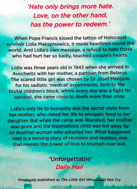 The Number One International Bestseller. The heartbreaking, inspiring true story of a girl sent to Auschwitz who survived the evil Dr Josef Mengele’s pseudo-medical experiments. With a foreword by His Holiness Pope Francis. Lidia Maksymowicz was just three years old when she arrived in Auschwitz-Birkenau with her mother, grandparents and foster brother. They were from Belarus, their ‘crime’ that they supported the partisan resistance to Nazi occupation. Once there, Lidia was picked by Mengele for his experiments and sent to the children’s block. It was here that she survived eighteen months of hell. Injected with infectious diseases, desperately malnourished, she came close to death. Her mother – who risked her life to secretly visit Lidia – was her only tie to humanity. By the time Birkenau was liberated her family had disappeared. Even her mother was presumed dead. Lidia was adopted by a woman from the nearby town of Oswiecim. Too traumatized to feel emotion, she was not an easy child to care for but she came to love her adoptive mother and her new home. Then, in 1962, she discovered that her birth parents were still alive. They lived in the USSR – and they wanted her back. Lidia was faced with an agonizing choice . . . The Little Girl Who Could Not Cry is powerful, moving and ultimately hopeful, as Lidia comes to terms with the past and finds the strength to share her story – even making headlines when she meets Pope Francis, who kisses her tattoo. Above all she refuses to hate those who hurt her so badly, saying, ‘Hate only brings more hate. Love, on the other hand, has the power to redeem.’