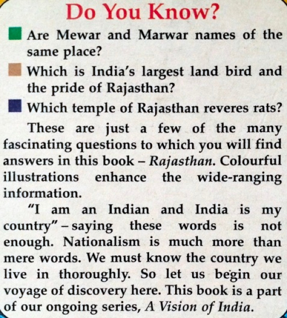 A VISION OF INDIA, a unique illustrative series, proposes to unveil India's modern profile for young readers. The information has been presented in the form of wide-ranging questions and answers, supported by colourful illustrations. The textual style is simple but incorporates a wealth of interesting details.