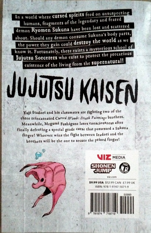 To gain the power he needs to save his friend from a cursed spirit, Yuji Itadori swallows a piece of a demon, only to find himself caught in the midst of a horrific war of the supernatural!In a world where cursed spirits feed on unsuspecting humans, fragments of the legendary and feared demon Ryomen Sukuna were lost and scattered about. Should any demon consume Sukuna’s body parts, the power they gain could destroy the world as we know it. Fortunately, there exists a mysterious school of jujutsu sorcerers who exist to protect the precarious existence of the living from the supernatural!Yuji Itadori and his classmates are fighting two of the three reincarnated Cursed Womb: Death Paintings brothers. Meanwhile, Megumi Fushiguro loses consciousness after finally defeating a special grade curse that possessed a Sukuna finger! Whoever wins the fight between Itadori and the brothers will be the one to secure the prized finger!