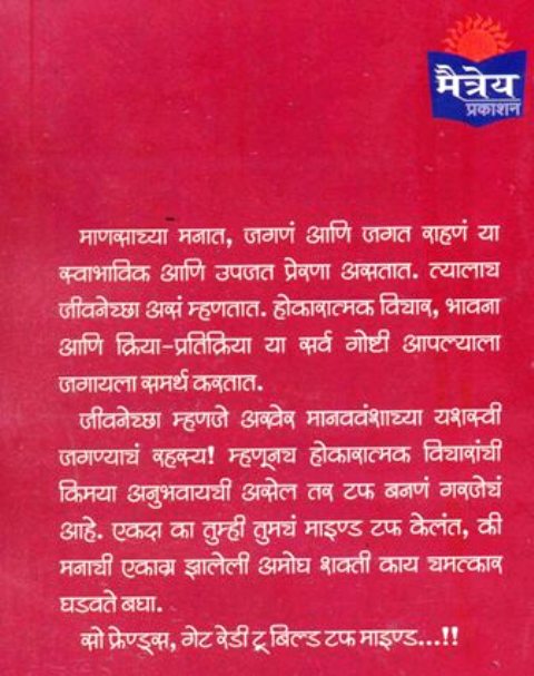 माणसाच्या मनात, जगणं आणि जगत राहणं या स्वाभाविक आणि उपजत प्रेरणा असतात. त्यालाच जीवनेच्छा असं म्हणतात. होकारात्मक विचार, भावना आणि क्रिया-प्रतिक्रिया या सर्व गोष्टी आपल्याला जगायला समर्थ करतात. जीवनेच्छा म्हणजे अखेर मानववंशाच्या यशस्वी जागण्याच रहस्य! म्हणूनच होकारात्मक विचारांची किमया अनुभवायची असेल तर टफ बनणं गरजेच आहे. एकदा का तुम्ही तुमच माइण्ड टफ केलंत, की मनाची एकाग्र झालेली अमोघ शक्ती काय चमत्कार घडवते बघा. चला तर मग, आपण टफ बनू. पॉझिटिव्ह राहू!