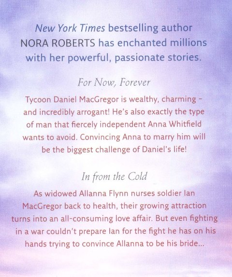 For Now, Forever Anna—Daniel's wife of forty years—relives her remarkable courtship, when meddlesome matchmaking patriarch and self-made millionaire Daniel MacGregor faced his biggest challenge: to convince the love of his life to marry him! Here at last is the story of how Daniel wooed and won the fiercely independent Anna Whitfield and launched his formidable dynasty. In From the Cold In this story about an eighteenth-century MacGregor, we learn that battling the British couldn't prepare Minuteman Ian MacGregor for the fight he's got on his hands to win the heart of Irish spitfire Allanna Flynn.