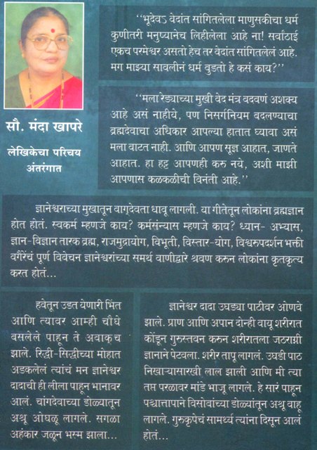 उत्कृष्ट लेखन आणि वाचकांना वाचनात बेधुंद करणारे लेखन हीच मंदाताईंची खासियत, मुक्ताई बद्धल ताई जे बोलल्या त्यातील हे चार शब्द... मुक्ताई लिहिताना मी त्यात इतकी रंगून गेले होते कि वाटायचं, मी या चार [...]