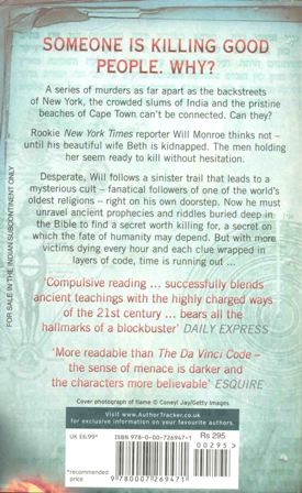 A blisteringly high-concept serial killer thriller combined with deliciousreligious conspiracy theory from a hot new British talent. Two murders at opposite ends of America, one in the backstreets of New York City, the other in the backwoods of Montana. A series of killings in every corner of the globe, from the crowded slums of India to the pristine beaches of Cape Town. There can't possibly be a connection. That's the instinct of Will Monroe, a young, British-born reporter for The New York Times