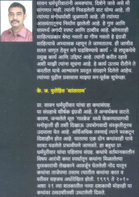 'बॉर्न इन द गारबेज' हा प्रा. सावन धर्मपुरीवार यांचा नऊ मर्मभेदी कथांचा संग्रह आकाराने लहान असला,तरी आशय व अभिव्यक्तीची उंची गाठणारा आहे.