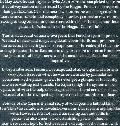 A searing account of life in prison and one mans fight for justice. In May 2007, human rights activist Arun Ferreira was picked up from the railway station and arrested by the Nagpur police on charges of being a naxalite. Over the next few months, he was charged with more crimes-of criminal conspiracy, murder, possession of arms and rioting, among others-and incarcerated in one of the most notorious prisons in Maharashtra, the Nagpur central jail. This is an account of the nearly five years that Ferreira was imprisoned. We read in stark and unsparing detail about life in prison-the torture, the beatings, the corrupt system, the codes of behaviour among inmates, the strikes mounted by prisoners to protest brutality, the general air of helplessness and the small consolations that keep hope alive. In September 2011, Ferreira was acquitted of all charges and a breath away from freedom when he was re-arrested by plainclothes policemen at the prison gates. He never got a glimpse of his family who were waiting just outside. He began to fight the system all over again, until with the help of courageous friends and activists, he was cleared of all the trumped up charges that had put him in prison. Colors of the cage is the real story of what goes on behind bars-not the celluloid or novelistic version that readers will be familiar with. However, it is not just a gritty, harrowing account of life in prison but also a memoir of astonishing power and grace-about a mans stubborn fight for justice and the triumph of the human will. Arun Fereira gives us a clear-eyed, unsentimental account of custodial torture, years of imprisonment on false cases and the flagrant violation of procedure that passes as the rule of law. His experience is shared by tens of thousands of our fellow countrymen and women, most of whom do not have access to lawyers or legal aid. This country needs many more books like this one.