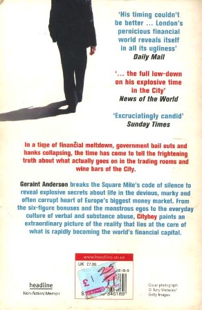In this no-holds-barred, warts-and-all account of life in London's financial heartland, Cityboy breaks the Square Mile's code of silence, revealing tricks of the trade and the corrupt, murky underbelly at the heart of life in the City. Drawing on his experience as a young analyst in a major investment bank, the six-figure bonuses, monstrous egos, and the everyday culture of verbal and substance abuse that fuels the world's money markets is brutally exposed as Cityboy describes his ascent up the hierarchy of this intensely competitive and morally dubious industry, and how it almost cost him his sanity.