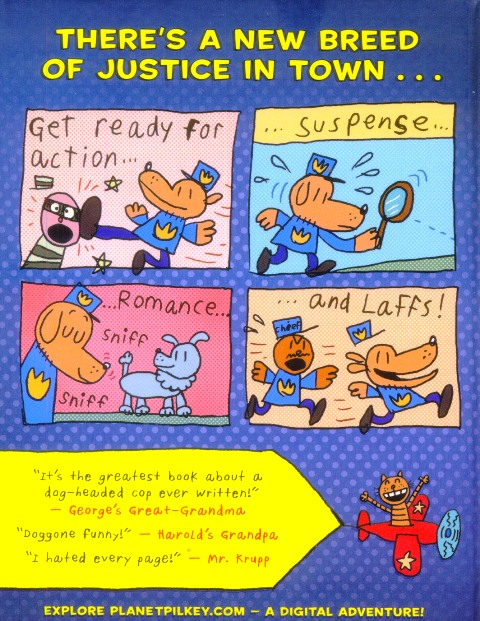 Howl with laughter with Dog Man, the internationally bestselling series from Dav Pilkey, the creator of Captain Underpants! George and Harold have created a new breed of justice -- one that is part dog, part man, and ALL HERO! With the head of a dog and the body of a human, this heroic hound digs into deception, claws after crooks, rolls over robbers, and scampers after squirrels. Will he be able to resist the call of the wild to answer the call of duty? Dav Pilkey's wildly popular Dog Man series appeals to readers of all ages and explores universally positive themes, including empathy, kindness, persistence, and the importance of being true to one's self.