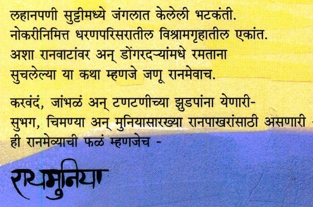 लहानपणी सुट्टीमध्ये जंगलात केलेली भटकंती. नोकरीनिमित्त धरणपरिसरातील विश्रामगृहातील एकांत. अशा रानवाटांवर अन् डोंगरदऱ्यांमध्ये रमताना सुचलेल्या या कथा म्हणजे जणू रानमेवाच. करवंद, जांभळं अन् टणटणीच्या झुडपांना येणारी- सुभग, चिमण्या अन् मुनियासारख्या रानपाखरांसाठी असणारी – ही रानमेव्याची फळं म्हणजेच – रायमुनिया