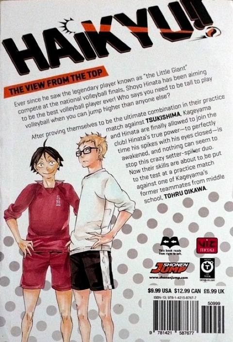 Shoyo Hinata is out to prove that in volleyball you don't need to be tall to fly!Ever since he saw the legendary player known as “the Little Giant” compete at the national volleyball finals, Shoyo Hinata has been aiming to be the best volleyball player ever! Who says you need to be tall to play volleyball when you can jump higher than anyone else?After proving themselves to be the ultimate combination in their practice match against Kei Tsukishima, Kageyama and Hinata are finally allowed to join the club! Hinata’s true power—to perfectly time his spikes with his eyes closed—is awakened, and nothing can seem to stop this crazy setter-spiker duo. Now their skills are about to be put to the test at a practice game against one of Kageyama’s former teammates from middle school, Tohru Oikawa.