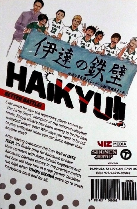 Shoyo Hinata is out to prove that in volleyball you don't need to be tall to fly!Ever since he saw the legendary player known as “the Little Giant” compete at the national volleyball finals, Shoyo Hinata has been aiming to be the best volleyball player ever! Who says you need to be tall to play volleyball when you can jump higher than anyone else? After having overcome the Iron Wall of Date Tech, it’s finally time for Karasuno to have their rematch with Aoba Johsai! Kageyama and Karasuno claimed victory in the practice match, but how will they fare in a real game? Tensions run high when Tohru Oikawa gears up to crush Kageyama once and for all.