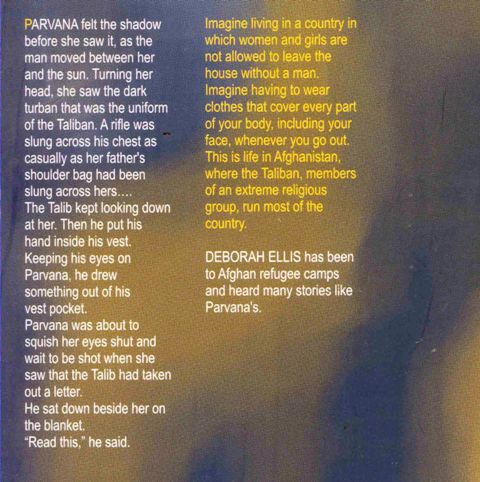 PARVANA felt the shadow before she saw it, as the man moved between her and the sun. Turning her head, she saw the dark turban that was the uniform of the Taliban. A rifle was slung across his chest as casually as her father's shoulder bag had been sl